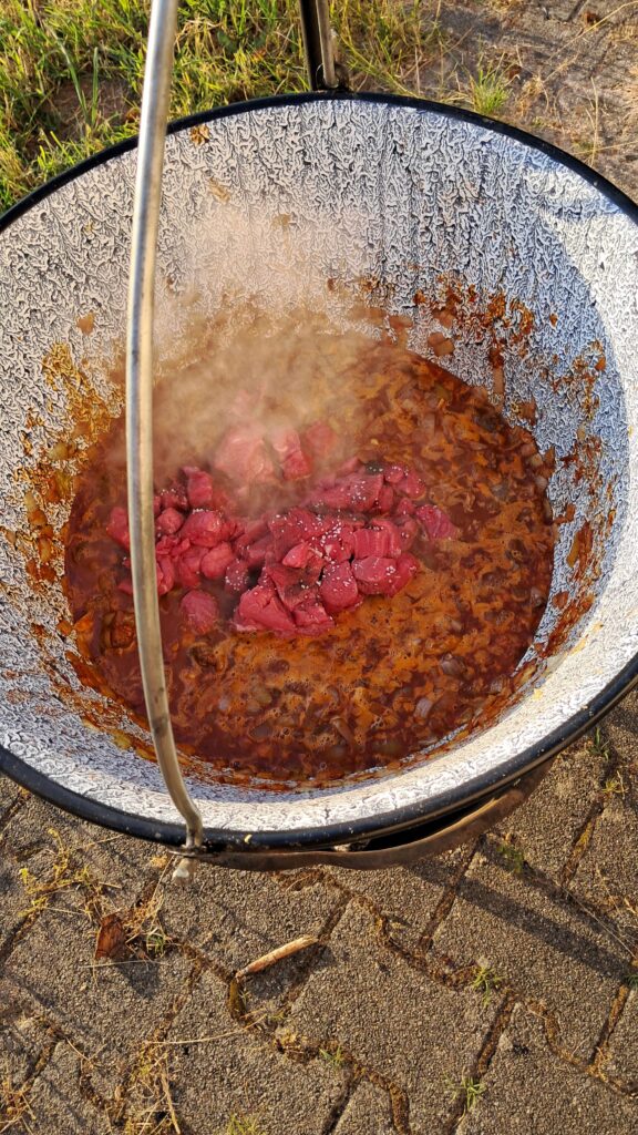 Das Gulasch kochte an dem Abend gute 4 Stunden, und musste am eigentlichen Fest nochmals 2 Stunden kochen, bis unsere Mitglieder es verkosten konnten.