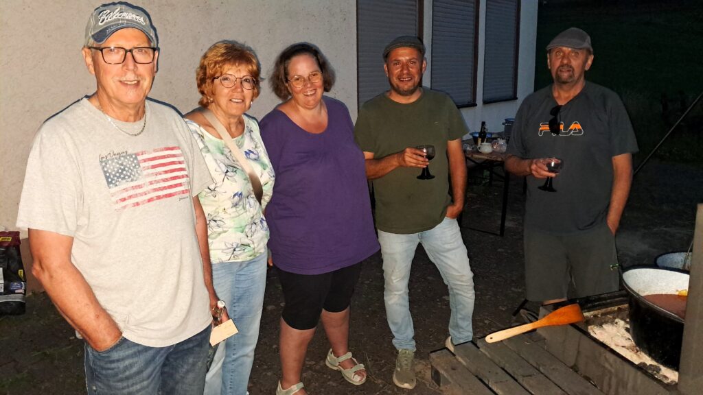 Nach dem obligatorischen Fassbieranstich, natürlich gab es auch ungarischen Wein und alkoholfreie Getränke, konnte sich jeder an den mitgebrachten Salaten und dem Gulasch sattessen.