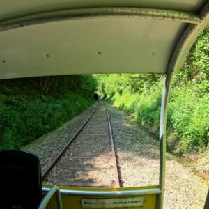 Ein kühles frisch gezapftes Bier und ein belegtes Brötchen schmeckte hervorragend nach einer Draisinenfahrt am Freitagmorgen bei schönstem Sommerwetter.