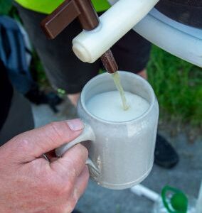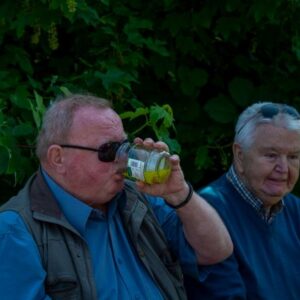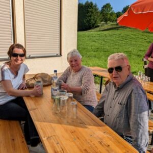 Eine Probe des Apfelweins sowie der verschiedenen Sorten Fruchtsäfte und der Bembel with care Dosen fanden rege Zustimmung, dazu gab es eine kleine Vesper.