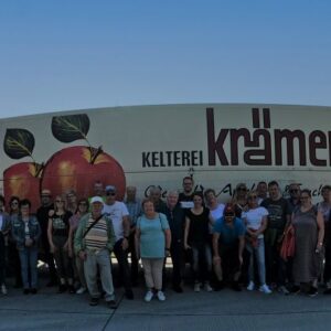 Im Anschluss an die Draisinenfahrt gab es einen Besuch der Kelterei Krämer, wobei es sich die Seniorchefin Gertrud Krämer nicht nehmen ließ, die Besichtigung selbst durchzuführen.