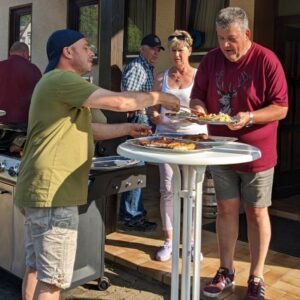 Bei kühlen Getränken, Bratwurst, Steaks und Salaten, sowie einem kleinen Soloauftritt von Jànos Bitter mit seiner Gitarre, saß man noch lange zusammen.