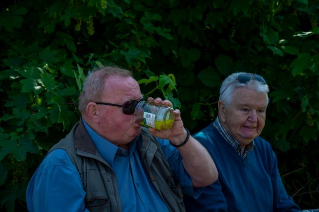 Eine Probe des Apfelweins sowie der verschiedenen Sorten Fruchtsäfte und der Bembel with care Dosen fanden rege Zustimmung, dazu gab es eine kleine Vesper.