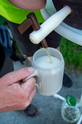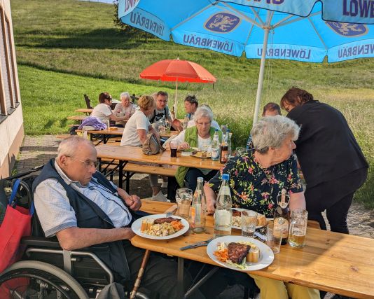Ein kühles frisch gezapftes Bier und ein belegtes Brötchen schmeckte hervorragend nach einer Draisinenfahrt am Freitagmorgen bei schönstem Sommerwetter.