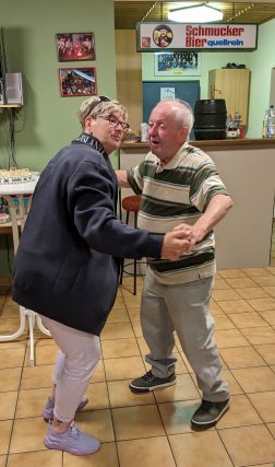 Im Anschluss an die Draisinenfahrt gab es einen Besuch der Kelterei Krämer, wobei es sich die Seniorchefin Gertrud Krämer nicht nehmen ließ, die Besichtigung selbst durchzuführen.