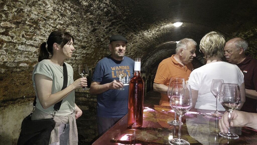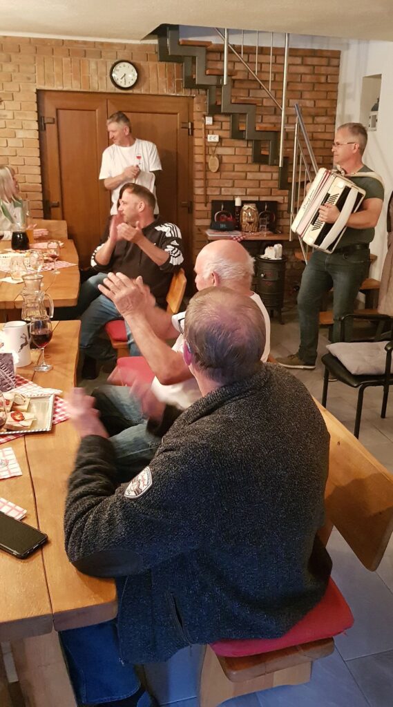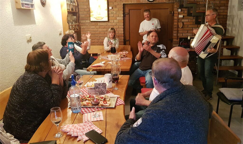 Am Abend traf man sich dann in der „Kellerhohl“, einem alten Straßenzug, wo die Weinbauer ihre Weinkeller öffneten. Bei zünftiger Akkordeonmusik von Jochen Rietdorf und ausgelassener Stimmung neigte sich der lange Tag dem Ende.