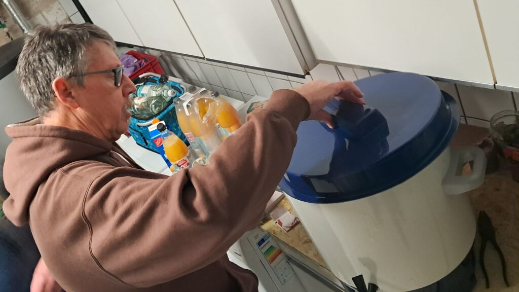 Montag vormittags Behälter leeren, Stromversorgung abbauen, usw.