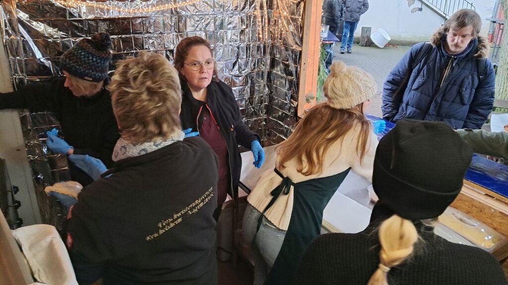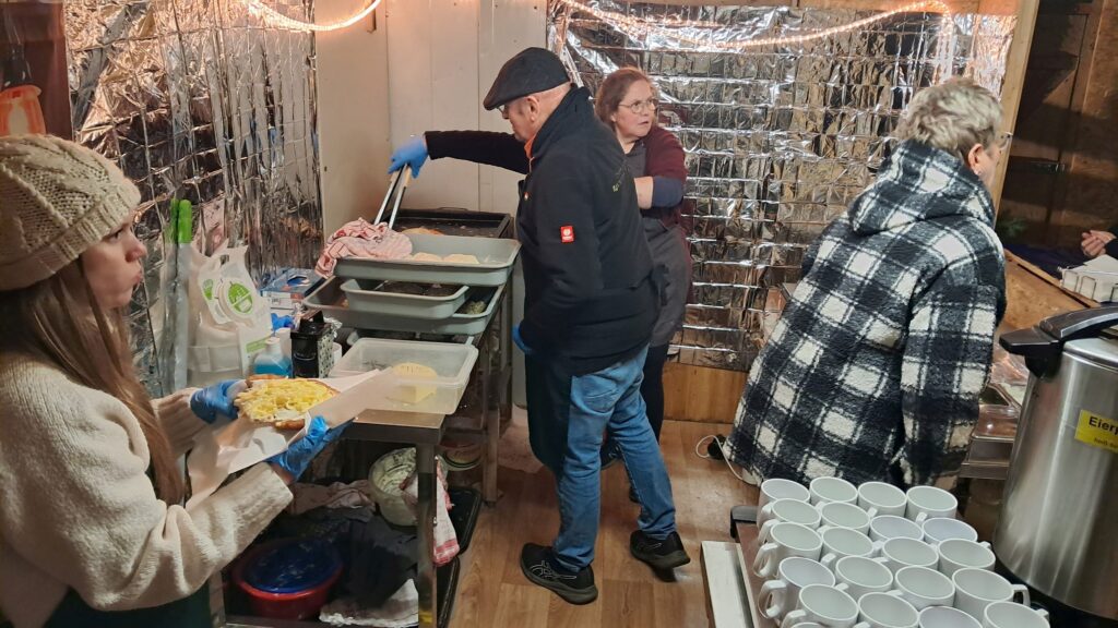Samstag 2 Stunden vor Öffnung schon vor Ort die Tassen spülen, Langos Teig vorbereiten, die Glühweinkocher füllen, alle Vorbereitungen damit die Helfer/innen gleich loslegen können,