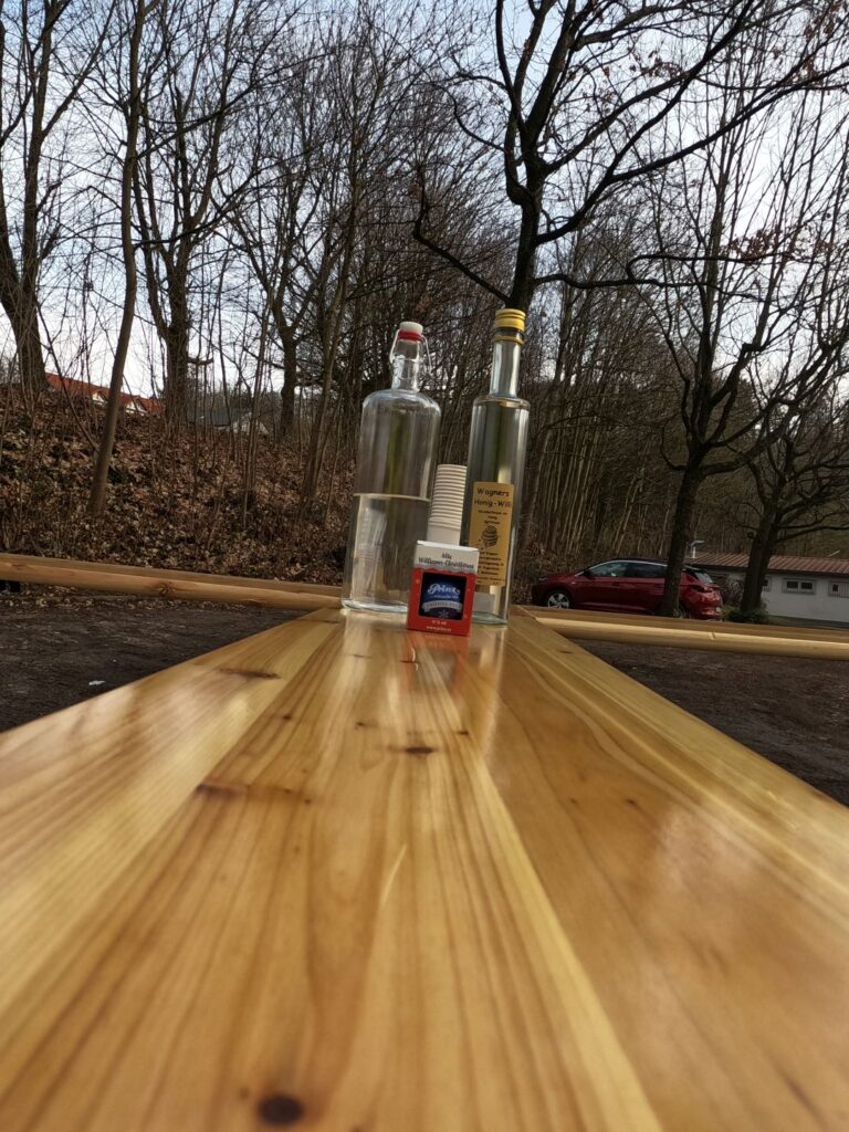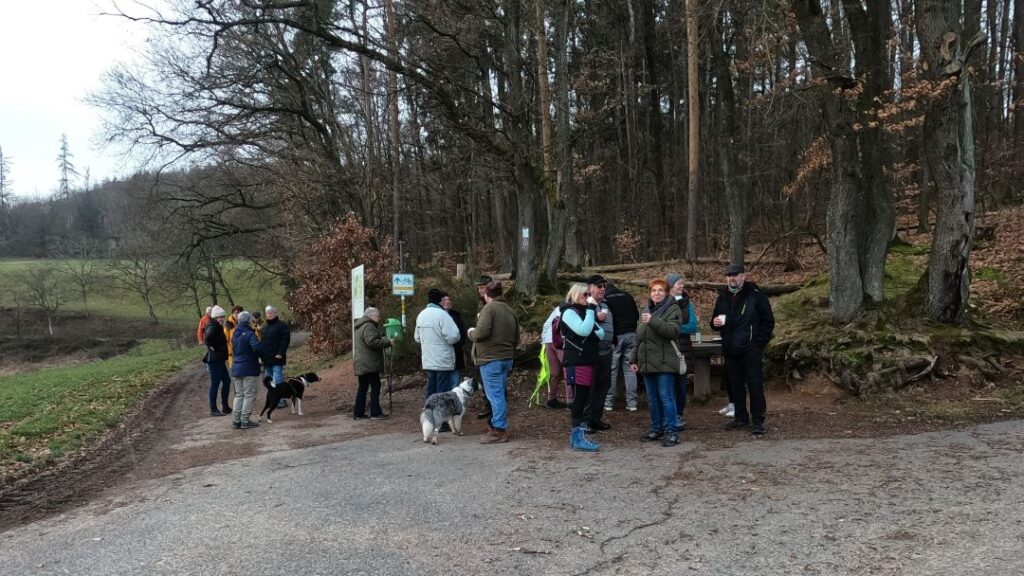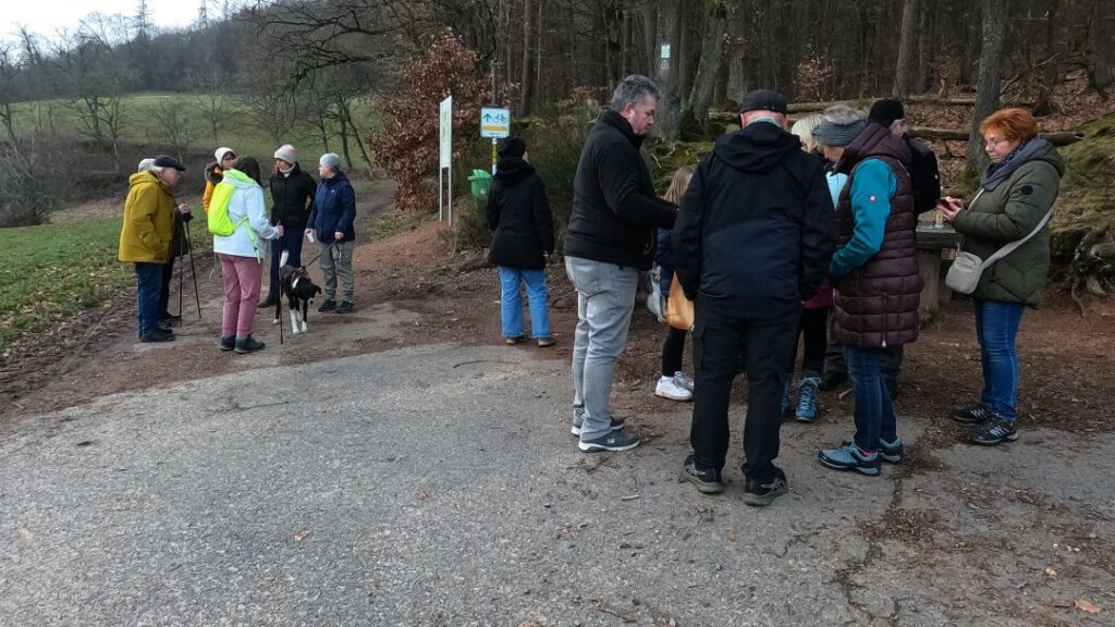 Beim Eintreffen auf dem Wanderparkplatz erwartete der 1.Vorsitzende die durstigen Wanderer, es konnte der restliche Eierpunsch verköstigt werden, für die frierenden gab es auch noch original ungarischen Traubenpalinka zu probieren, davon wird jedem warm.